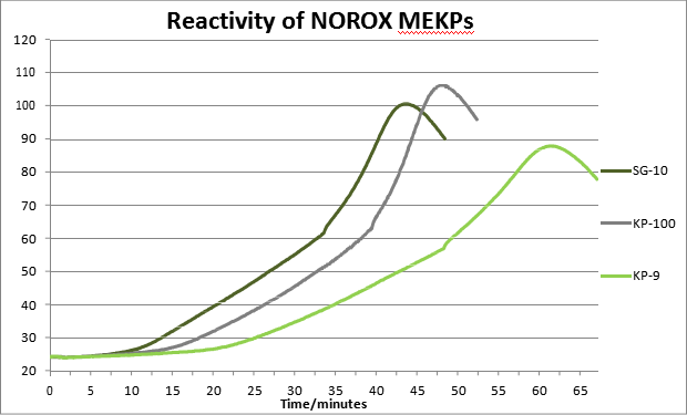 NOROX KP-9 is a methyl ethyl ketone peroxide in phlegmatiser for the curing of unsaturated polyester resins at ambient temperature in combination with cobalt accelerators.